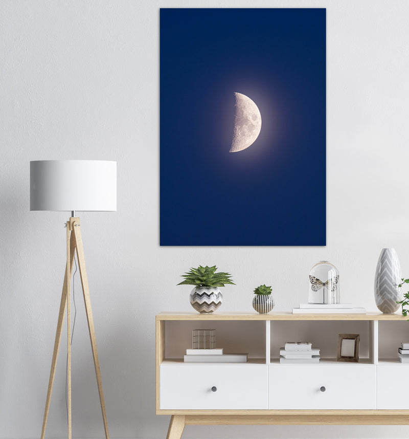 This half moon against a backdrop of royal blue is the serene jewel of the night sky. Bring the beauty of this Demilune into your home, or gift a loved one with the elegant silver and blue beauty of the night sky.